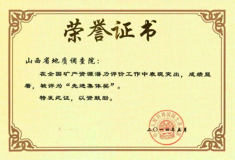 研究院始終堅持“質量第一,誠信為本,勇于創(chuàng)新”的宗旨,原始資料及成果報告優(yōu)良率100%,優(yōu)秀率達75%。完成的西藏1∶25萬土則崗日幅、山西1∶25萬忻州市幅區(qū)域地質調查獲國土資源部科學技術二等獎;在全國優(yōu)秀圖幅展評中1∶25萬忻州市幅獲一等獎,1∶25萬托和平錯、應縣幅及1∶5萬御棗口幅獲二等獎,1∶25萬岢嵐縣幅、臨汾市幅、侯馬市幅等6個項目獲三等獎,其中1∶25萬、應縣幅、岢嵐縣幅、侯馬市幅獲中國地質調查成果二等獎。